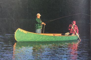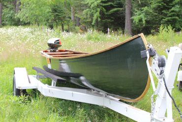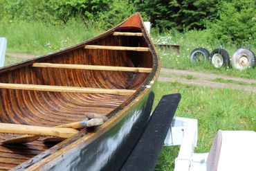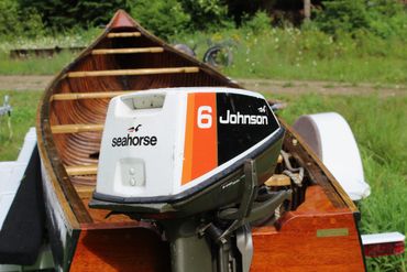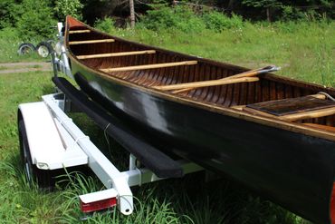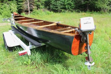 20-foot wooden canoe: Pop Moore Grand Lake original. This beautiful hand-crafted square stern wooden canoe was built by Pop Moore in Maine in 1964 and is in great condition. Pop Moore created over 1,000 canoes in his career, and this is one of his finest. It's a great canoe for families and fishermen. The square stern can be paddled with ease but also allows for a small outboard motor. The transom is designed to make the canoe travel fast and level even with increased power.
